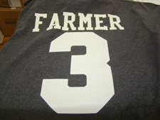 Names & Numbers We have answered your needs by adding the ability to add names, numbers, and designs to sports uniforms and bags at a more cost effective rate than embroidery. We can now offer lettering like that on professional sports teams uniforms and it can simulate screen printing without the screen fees or chemicals and mess. We can do neon lettering, metallic, flocking, and reflective materials on all types of materials, even nylon and leather. Sports bags, hoodies, t-shirts, polos, banners, & signs. We can even do window clings, vehicle graphics, sports emblems, etc. Email us at sales@stitchesbybaker.com for further information.